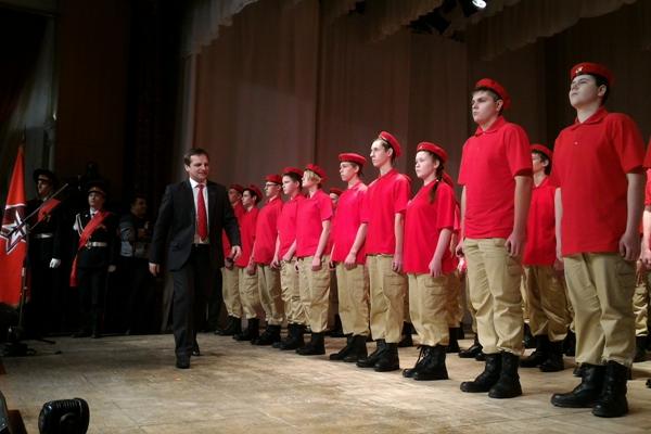 Торжественная церемония по случаю приема учащихся школы № 27 в ряды Всероссийского военно-патриотического движения «Юнармия» состоялась сегодня во Дворце детского творчества.