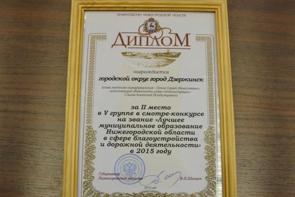 Дзержинск занял второе место в областном конкурсе на лучшее муниципальное образование в сфере благоустройства.