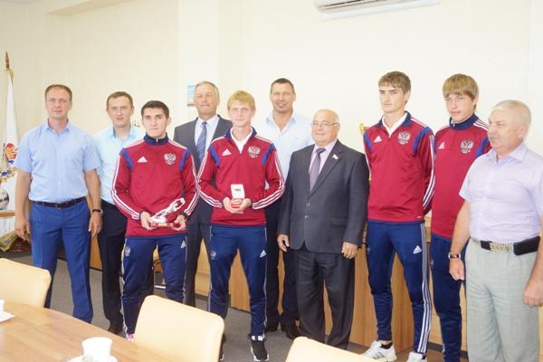 Сегодня Глава города Дзержинска Валерий Чумазин поздравил Владислава Рарецкого, Александра Кулигина, Вячеслава Ларионова и Дмитрия Пестрецова с победой в составе паралимпийской сборной России по футболу на Чемпионате мира 7х7 в Великобритании в июне этого года.