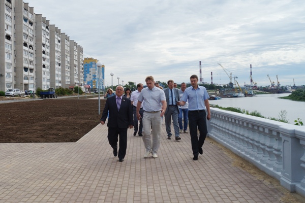 Глава города Дзержинска Валерий Чумазин в рамках традиционного объезда городских территорий оценил ход работ по благоустройству набережной реки Оки.